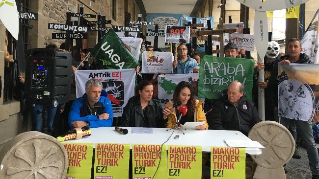 Ostegunean prentsaurreko bat egin genuen manifestazioaren deialdiaren berri emateko. Manifestazioa arratsaldeko 6etan abiatuko da Bilbo plazatik, Foruen plazara iritsi arte. Erakundeei eta arduradun politikoei erakutsi nahi diegu lurraldea, gure herriak eta landa-inguruneko bizimodua defendatzen dugunak gehiengoa garela.